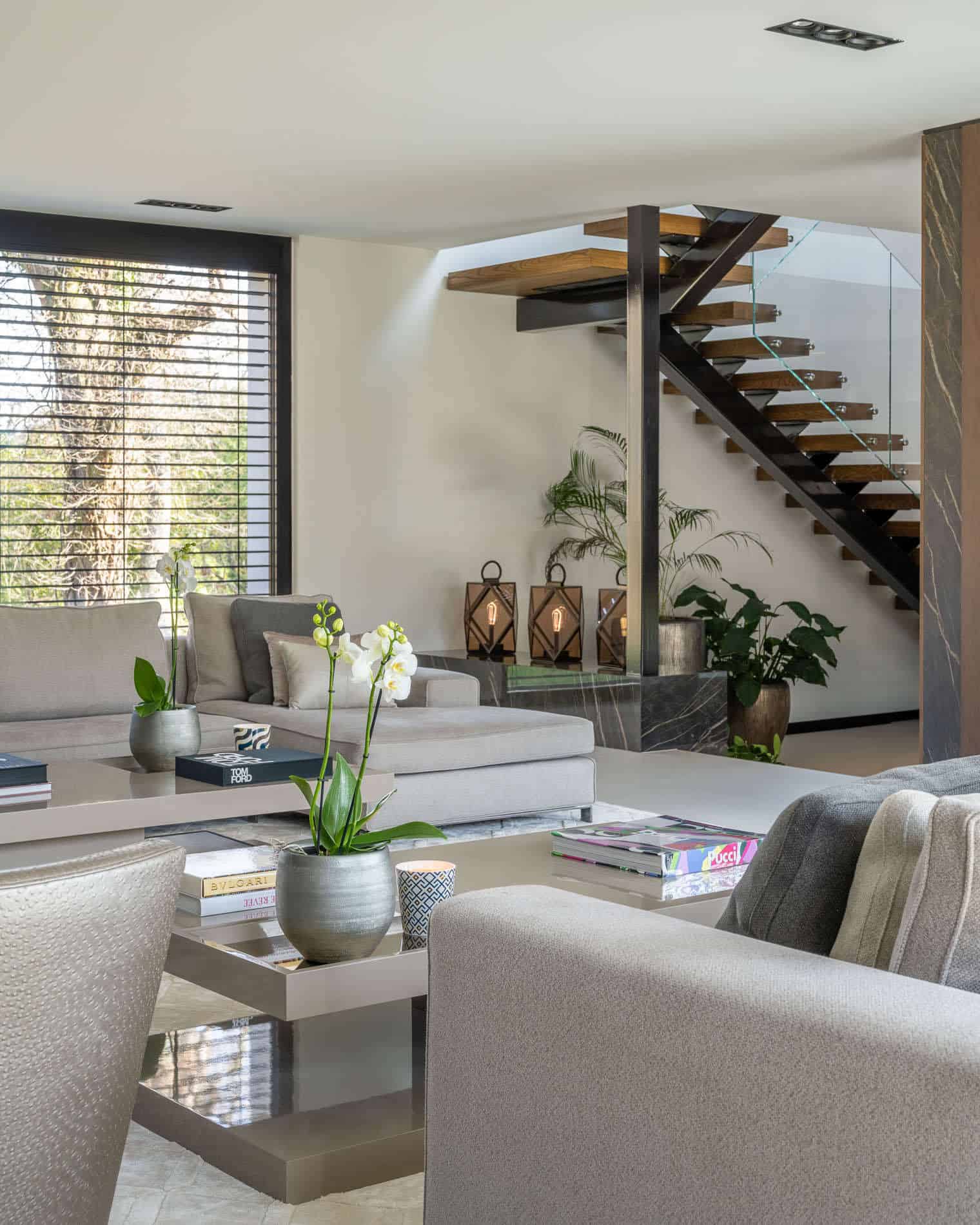 The villa now radiates elegance and subtle glamour, offering a serene retreat where every detail has been considered. Soft earth tones define the atmosphere, adding warmth and tranquility, while the refined material palette brings sophistication and harmony to the space.